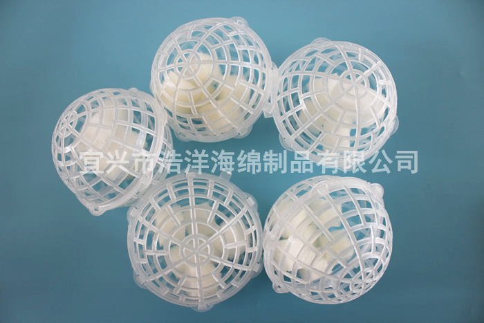 聚氨酯懸浮球填料又稱(chēng)多孔旋轉球形懸浮填料,是對國內處理污水、廢氣而采用生物膜法處理技術(shù)的多種填料中開(kāi)發(fā)的新型產(chǎn)品。它在生化處理中具有全立體結構,比表面積大,直接投放,無(wú)須固定,菌種易掛膜,不堵塞,易流化等優(yōu)點(diǎn)。